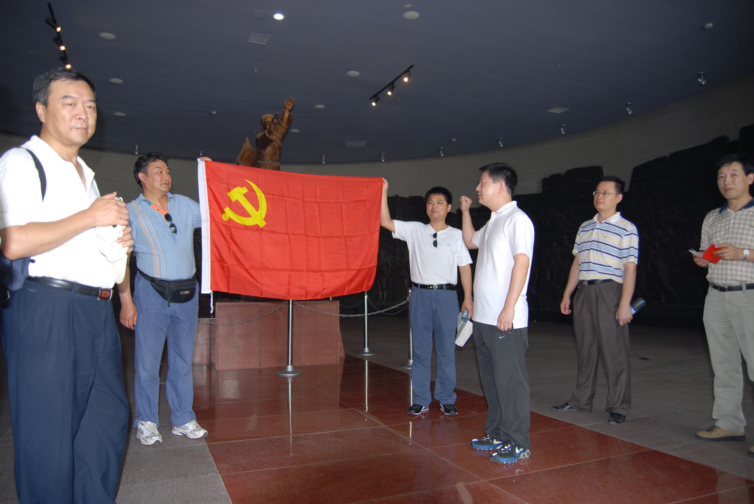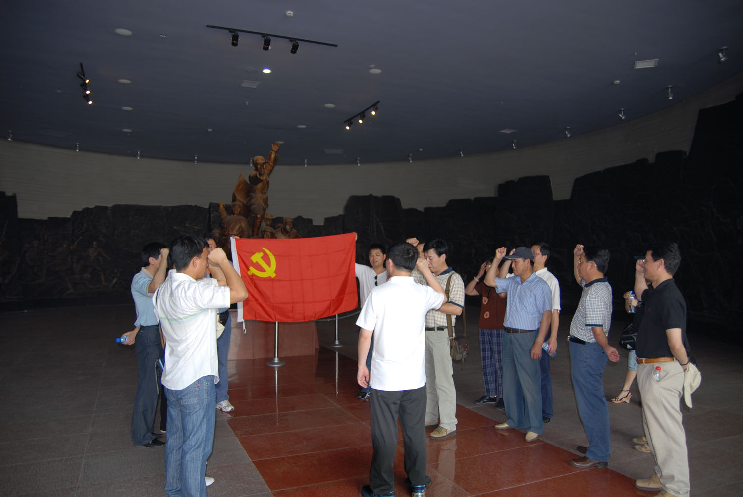 最后在淮海戰(zhàn)役紀(jì)念館前,預(yù)備黨員面隊著中國共產(chǎn)黨黨旗,緊握右拳,舉起手臂進(jìn)行了莊嚴(yán)的入黨宣誓,老黨員重溫入黨誓詞。不少同志拍下了許多照片來紀(jì)念這次有意義的活動,最后全體黨員同志在淮海戰(zhàn)役紀(jì)念碑前合影以留念。
