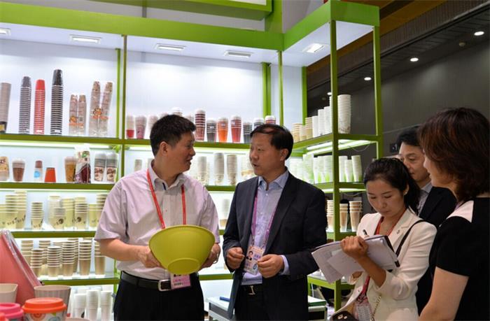 省商務(wù)廳張箭廳長(zhǎng)(左一)巡視安糧控股展位