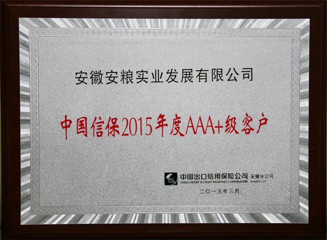 安糧實(shí)業(yè)獲中國(guó)信保2015年度AAA+級(jí)客戶稱號(hào)