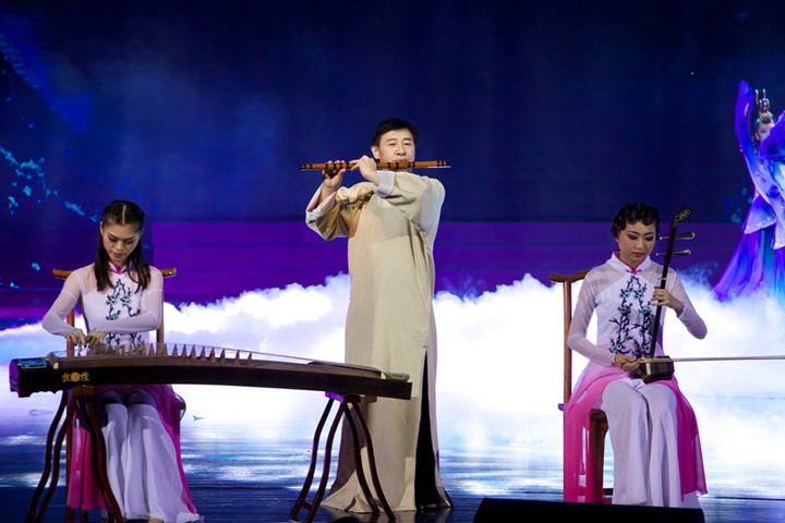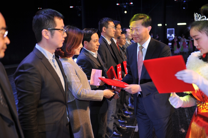 表彰結束后,安糧200余名員工獻上了悉心準備、精彩紛呈的文藝演出。演出以“乘風追夢”、“逐夢新生”、“夢想騰飛”三個篇章呼應安糧集團四十年的歷史,涵蓋傳統(tǒng)黃梅歌舞、情景舞蹈、現(xiàn)代舞蹈、情景劇、器樂演奏以及安糧、控股領導班子參演的詩朗誦等不同風格的節(jié)目。安糧員工曼妙的舞姿、出色的演技、動情的演繹折服了在場的觀眾,一次次將演出推向高潮,現(xiàn)場掌聲迭起。慶典在描寫安糧蓬勃發(fā)展,永續(xù)輝煌的大型歌舞《新征程 新希望》中落下帷幕,安糧集團成立四十周年慶典圓滿結束,安糧集團四十周年系列慶?;顒又链水嬌蠄A滿的句號。