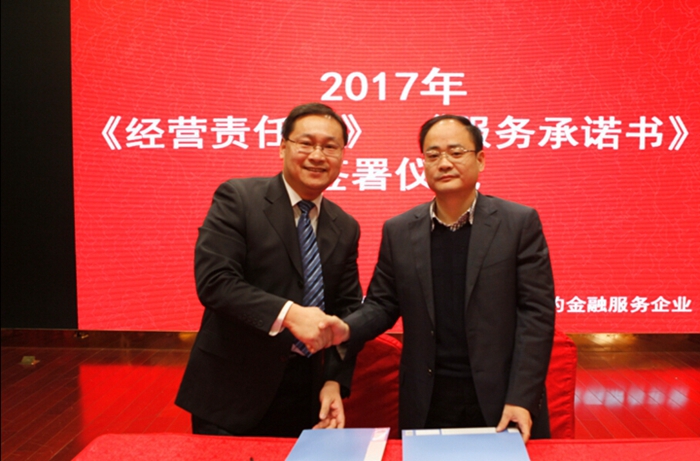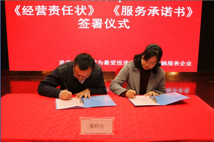 隨后,公司領(lǐng)導(dǎo)與各業(yè)務(wù)部門及金財匯頂子公司簽署了《2017年度經(jīng)營目標(biāo)責(zé)任書》,與各中后臺及創(chuàng)新業(yè)務(wù)部門簽署了《2017年度服務(wù)承諾書》。