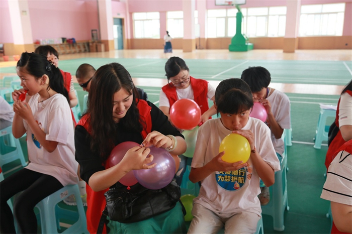 見面會上,團(tuán)委書記方嘉亮向老師和小朋友們介紹了安糧集團(tuán)情況及本次活動的安排。小朋友們?yōu)榘布Z集團(tuán)的“大哥哥”、“大姐姐”們表演了舞蹈和古箏演奏,志愿者代表為小朋友們演唱了歌曲《隱形的翅膀》。孩子們雖然在聽力、視力、語言表達(dá)上有障礙,但是,精彩的舞蹈、動聽的琴聲、無邪的笑臉讓這樣一群“特殊”的孩子們更顯珍貴。表演結(jié)束,志愿者們用熱烈的掌聲表達(dá)內(nèi)心的感動與贊揚(yáng)。才藝表演結(jié)束后,志愿者們與小朋友們“一對一”結(jié)對子,進(jìn)行了一場生動活潑的吹氣球游戲,志愿者們還向小朋友們贈送了精心準(zhǔn)備的兒童節(jié)小禮物,孩子們?yōu)橹驹刚叽魃狭思t領(lǐng)巾。
