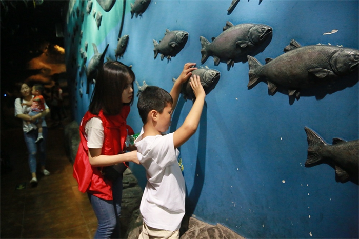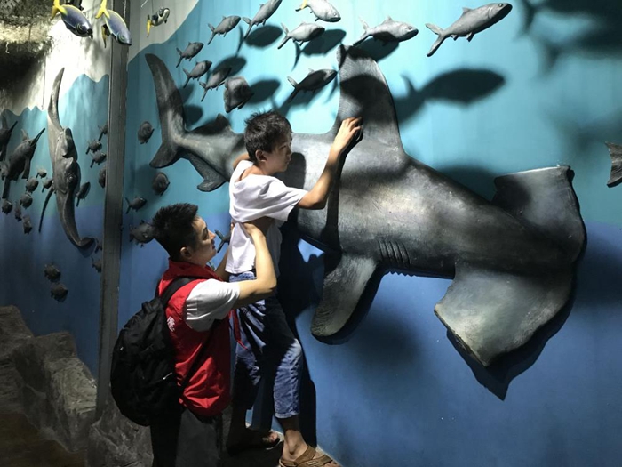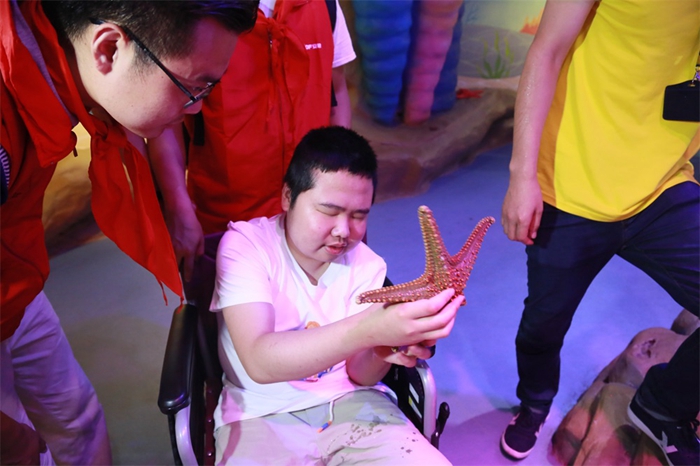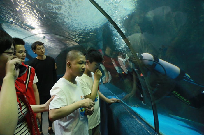 見面會結(jié)束后,志愿者們與小朋友手牽手,乘車來到合肥海洋館。珊瑚、魚兒五彩斑斕,海獅、海豚表演精彩紛呈,小朋友們因為聽力或視力障礙無法完全感受得到,但哥哥姐姐們用愛與陪伴、細(xì)心描述讓小朋友“看”到、“聽”到、感受到了世界的美好,純真的笑容背后是一個美麗多彩的世界。結(jié)束海洋館體驗,志愿者們與小朋友共同制作漢堡,共同享受了快樂的午餐。