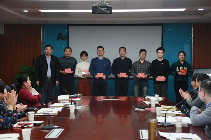 支部大會共分六個環(huán)節(jié),首先,由支部組織紀檢委員講授了一堂題為“踐行十九大思想,扎實開展組織紀檢工作”的黨課,黨課以十九大會議精神為主旨,重點解讀和公司貿(mào)易經(jīng)營有關的篇章,把會議精神與公司經(jīng)營發(fā)展與防控風險相結合,為深入學習貫徹十九大精神做好了鋪墊。會議第二項,由支部書記朱亮給7位示范崗黨員進行授牌,此舉是以強化典型帶動為目的,為探尋支部特色黨建,發(fā)揮黨員模范先鋒作用,提升黨組織的影響力,通過互助互學、幫扶傳承的方式,把好的經(jīng)驗做法通過示范崗平臺共享、交流。會議第三項開展年度組織生活會,根據(jù)《安徽省國有企業(yè)基層黨組織建設標準》要求,支部開展以“不忘初心、爭優(yōu)創(chuàng)新”為主題的年度組織生活會,各組黨員代表積極踴躍發(fā)言,結合自身崗位特色緊緊圍繞“初心、創(chuàng)新”兩大主題開展討論。會議第四項,討論并表決通過了2名預備黨員轉正事宜。會議第五項開展黨員民主評議,為踏實開展此項工作,支部發(fā)動廣大黨員的集體智慧,就如何開展黨員民主評議進行了熱烈討論,征集了多維度黨員民主評議的若干意見,把本次評議工作落到實處。