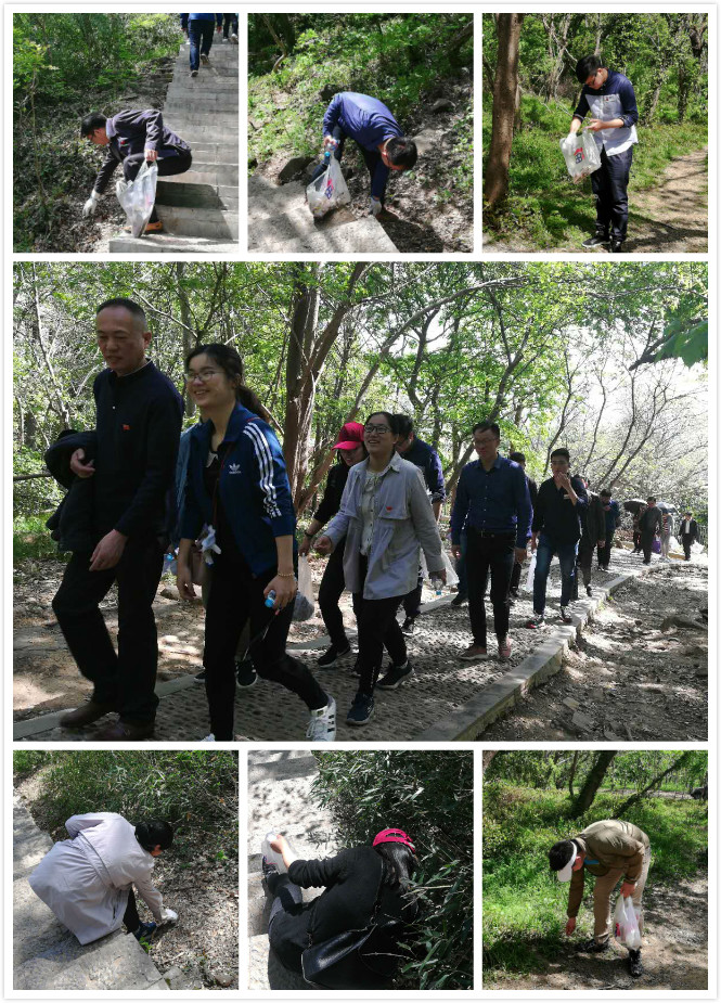 在烈士紀(jì)念碑前,全體黨員佩戴黨徽面對黨旗莊嚴(yán)宣誓,重溫入黨誓詞并向革命先烈鞠躬致敬。隨后通過參觀安徽革命烈士事跡陳列館了解歷史真相,追思革命先烈豐功偉績,學(xué)習(xí)先烈志士先進(jìn)事跡,在講解員的生動解說中,大家深刻體會了革命先烈為人民幸福前仆后繼的獻(xiàn)身精神,學(xué)習(xí)了革命先烈對黨忠誠的崇高風(fēng)范。參觀結(jié)束后,黨員們從陵園出發(fā)登頂大蜀山,沿途拾撿垃圾,還烈士一片長眠凈土。在我們的影響下,登山群眾紛紛加入到綠色行動中來,撿起小道上丟棄的空水瓶、零食包裝。。。更有親子行的父母教育孩子要以我們?yōu)榘駱樱瑥男○B(yǎng)成不隨地亂扔垃圾的好習(xí)慣,為美化生活環(huán)境做出自己的小小努力。