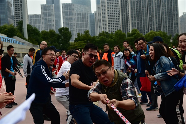 上午9點(diǎn)半,在簡(jiǎn)短的開幕式后,別開生面的競(jìng)賽項(xiàng)目陸續(xù)登場(chǎng),八支隊(duì)伍各顯風(fēng)采。五人六足項(xiàng)目首先登場(chǎng),步伐一致是該項(xiàng)目的制勝法寶,東倒西歪的令人捧腹,中途摔倒的令人嘆息,安糧地產(chǎn)代表隊(duì)最終勇拔頭籌;摸石過(guò)河考驗(yàn)手足協(xié)調(diào),安糧期貨熊青寶快速突圍,棋高一著;跳大繩的關(guān)鍵是快和穩(wěn),安糧國(guó)際一鼓作氣,幾乎零失誤,遙遙領(lǐng)先;踢毽子比賽靈巧之中顯真功夫,集團(tuán)本部方嘉亮身手不凡,技?jí)喝河?;自行車?jìng)慢,平靜中見驚奇,合肥建工黃玉璟獨(dú)樹一幟;托球接力跑,一考凌波微步,二比掌上功夫,安糧實(shí)業(yè)笑到最后;呼啦圈競(jìng)走難在“左右互博”,安糧小貸張媛媛最具神通;拔河項(xiàng)目是力量的較量,建工一隊(duì)勢(shì)如犇牛,盡展雄風(fēng);滾鐵環(huán)項(xiàng)目,作為童年的回憶,也漸漸成為回憶中的項(xiàng)目,安糧控股潘冬生副總裁帶大家領(lǐng)略了老前輩的少年風(fēng)采;50米折返跑接力作為本屆比賽的壓軸大戲,最為矚目,集團(tuán)聯(lián)隊(duì)一騎絕塵!十項(xiàng)比賽結(jié)束,“有趣”的一天也臨近尾聲,8支隊(duì)伍各領(lǐng)風(fēng)騷,獎(jiǎng)牌背后,團(tuán)結(jié)奮進(jìn)是制勝的終極秘訣。
