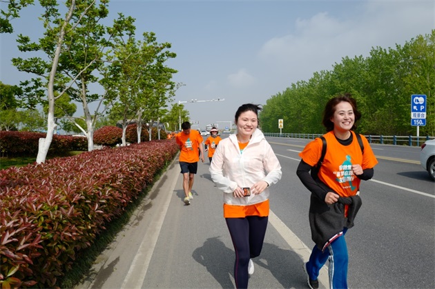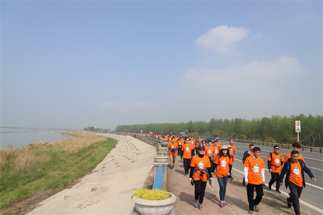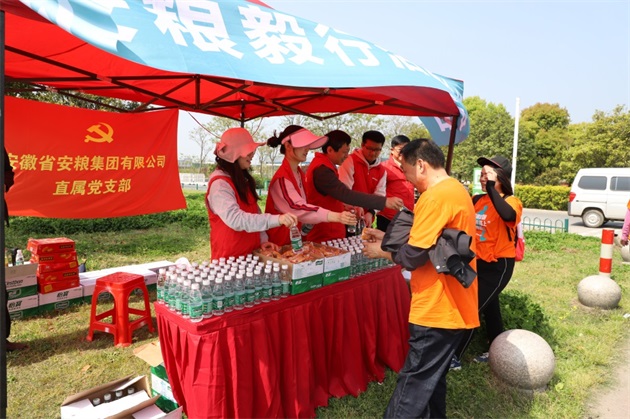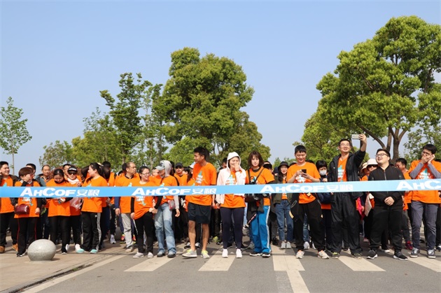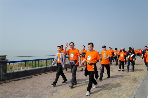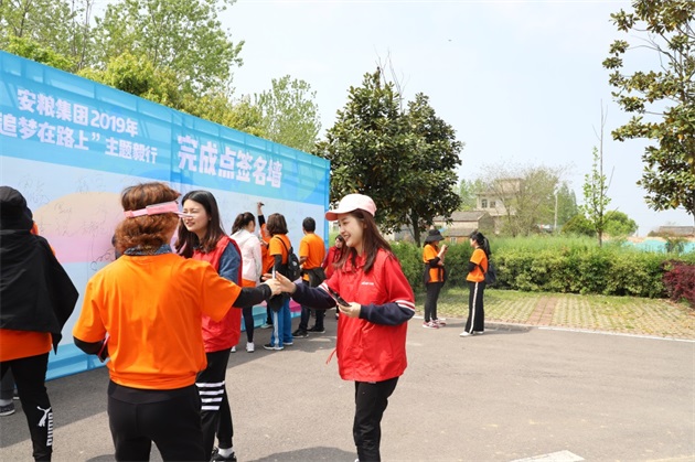 一路上,統(tǒng)一著裝的毅行隊(duì)伍如一股橙色的春潮,激蕩在碧波萬頃、楊柳接岸的巢湖之濱。伴著融融春日,吹著習(xí)習(xí)微風(fēng),毅行隊(duì)伍一邊暢享行走的樂趣,一邊欣賞大美巢湖的秀麗春色,一邊笑談工作或生活的點(diǎn)滴。上午10點(diǎn)5分,來自安糧實(shí)業(yè)的薛寶第一個沖破終點(diǎn)線,隨后,其他毅行者也陸續(xù)抵達(dá)終點(diǎn)。大家在留言墻上簽名并合影留念,一張張笑臉洋溢著成功的喜悅。