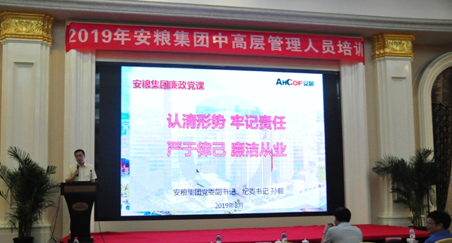為深入推進(jìn)“不忘初心、牢記使命”主題教育,深化落實(shí) “三個(gè)以案”教育,8月16日至17日,安糧集團(tuán)黨委副書記、紀(jì)委書記孫毅在安糧集團(tuán)2019年中高層管理人員培訓(xùn)期間,為參加學(xué)習(xí)的安糧集團(tuán)、控股本部及貿(mào)易、建工兩大板塊的120多名黨員干部講授題為《認(rèn)清形勢(shì) 牢記責(zé)任 嚴(yán)于律己 廉潔從業(yè)》專題廉政黨課。