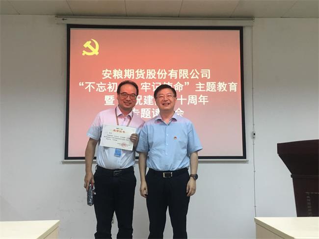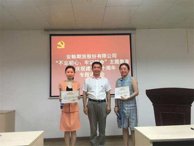 為深入開(kāi)展“不忘初心、牢記使命”主題教育暨慶祝建國(guó)七十周年,學(xué)習(xí)貫徹習(xí)近平新時(shí)代中國(guó)特色社會(huì)主義思想,讀原著、學(xué)原文、悟原理,8月23日,安糧期貨黨支部、團(tuán)支部及工會(huì)聯(lián)合開(kāi)展“不忘初心、牢記使命”主題教育暨慶祝建國(guó)七十周年專題讀書(shū)會(huì)。讀書(shū)會(huì)由公司投資咨詢部李雨馨主持,公司黨支部書(shū)記汪勇帶領(lǐng)公司高管為讀書(shū)會(huì)擔(dān)任評(píng)委,全體黨員、入黨積極分子、共青團(tuán)員、工會(huì)委員等參加。