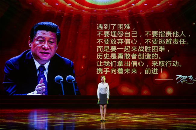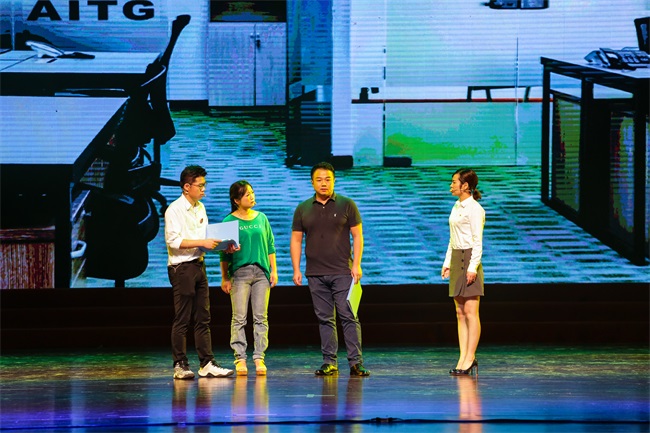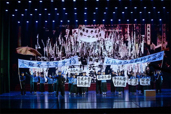 情景劇《使命的接力》分為四個(gè)篇章,前三個(gè)篇章以五四運(yùn)動(dòng)、抗日戰(zhàn)爭(zhēng)、新中國(guó)成立以及改革開放等重要時(shí)間節(jié)點(diǎn)為背景,節(jié)選具有鮮明時(shí)代烙印的畫面,講述了一百年來中國(guó)人民的民族氣節(jié)和不屈不饒的奮斗歷程;最后一個(gè)篇章則回歸到當(dāng)下外貿(mào)工作中的一個(gè)真實(shí)場(chǎng)景,描述了新時(shí)代國(guó)貿(mào)人接過前輩的接力棒,不忘初心、牢記使命,在一次次的磨礪中不斷成長(zhǎng),立志為中華民族偉大復(fù)興貢獻(xiàn)力量的動(dòng)人故事。