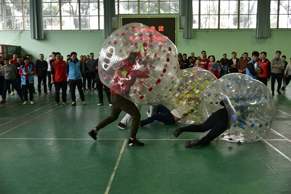 簡(jiǎn)短的開幕式后,十二個(gè)比賽項(xiàng)目輪番上演,比賽場(chǎng)迅速變成了一片歡樂的海洋?!熬湃耸恪表?xiàng)目率先登場(chǎng),較之上屆的“五人六足”可謂“更快、更強(qiáng)”,安糧期貨一馬當(dāng)先;“摸石過河”接踵而至,安糧期貨熊青寶協(xié)調(diào)迅捷,強(qiáng)勢(shì)衛(wèi)冕;“跳大繩”此番桂冠易主,安糧期貨又下一城;“夾乒乓球”同時(shí)考驗(yàn)“筷子”和“乒乓球”兩項(xiàng)“國(guó)技”,集團(tuán)紀(jì)委孫毅書記“一箭三雕”驚艷全場(chǎng);“滾雪球”頗有田忌賽馬的謀略比拼,安糧實(shí)業(yè)技高一籌。拔河比賽壓軸登場(chǎng),合肥建工“強(qiáng)漢”如林,包攬三甲。全天比賽結(jié)束,安糧期貨以5枚團(tuán)體項(xiàng)目金牌和3枚個(gè)人項(xiàng)目金牌,成為本屆趣味運(yùn)動(dòng)會(huì)的最大贏家。