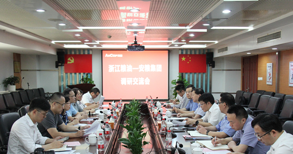7月31日上午,浙江糧油董事長(zhǎng)袁承海帶隊(duì)來(lái)到安糧調(diào)研交流,公司黨委書(shū)記、董事長(zhǎng)曹訓(xùn)立,黨委副書(shū)記、總裁方宗友及部分集團(tuán)控股領(lǐng)導(dǎo)班子成員熱情接待了袁承海董事長(zhǎng)一行,并舉行交流座談會(huì)。
