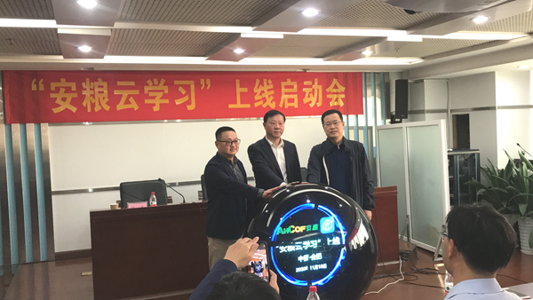 夢想從學習開始,事業(yè)從實踐起步。11月18日,安糧集團職工網絡學習培訓平臺-------“安糧云學習”------上線啟動會在盛安廣場18樓舉行,安糧集團黨委書記、董事長曹訓立,安糧集團黨委副書記、紀委書記孫毅與平臺供應商江蘇云學堂副總經理張杰共同啟動平臺,安糧系統(tǒng)各單位近60名員工作為學習代表見證了“安糧云學習”平臺正式上線。