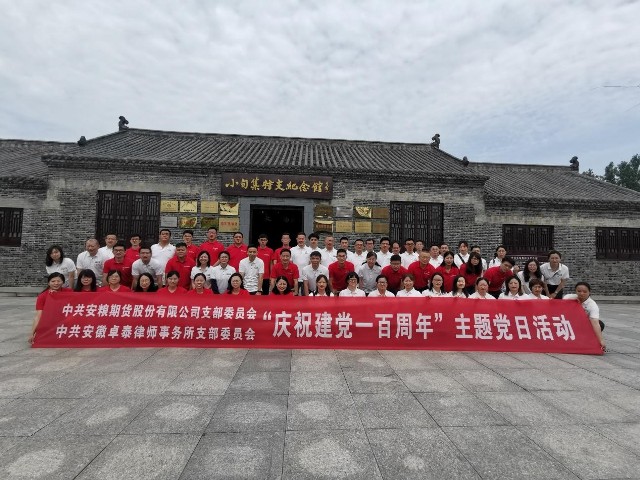 賀百年華誕,恰風華正茂。在中國共產黨百年誕辰之際, 6月20日,安糧期貨黨支部與安徽卓泰律師事務所黨支部共赴中共壽縣小甸集特支紀念館開展“慶祝建黨一百周年”主題黨日活動,探尋紅色足跡,接受革命傳統(tǒng)教育。