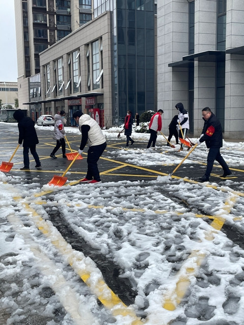 在一個(gè)多小時(shí)的掃雪除冰過程中,隊(duì)員們不畏寒冷,分工有序,配合默契,干勁十足。雖雪水浸入鞋里,臉和手凍得通紅,忙得渾身是汗,但大家掃雪除冰熱情高漲,隊(duì)員們的身影在雪的映襯下形成了一道亮麗的風(fēng)景線。很快,大樓四周的路面、車庫出入口就被打掃干凈,為公司員工的上下班出行開辟了一條洋溢著溫情與關(guān)愛的安全便捷之路。