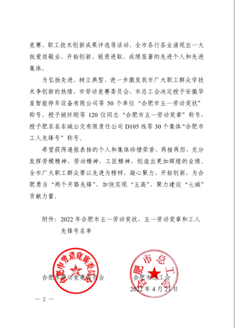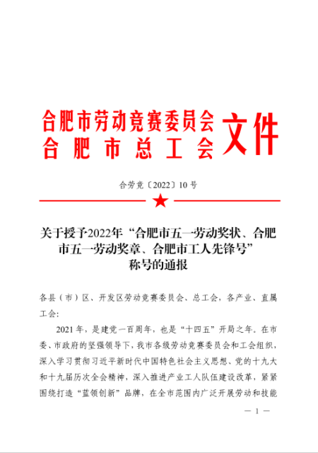 5月1日,合肥市勞動競賽委員會、合肥市總工會聯(lián)合發(fā)布《關(guān)于授予2022年“合肥市五一勞動獎狀、合肥市五一勞動獎?wù)隆⒑戏适泄と讼蠕h號”稱號的通報》,合肥建工辦公室主任張海東榮獲2022年“合肥市五一勞動獎?wù)隆狈Q號。