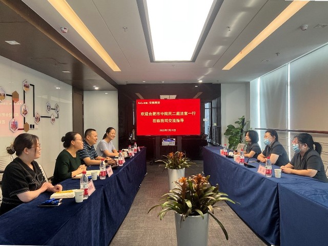 7月19日下午,合肥市中級人民法院“法官進(jìn)企業(yè)”活動走進(jìn)安糧期貨,安糧期貨黨支部書記、總經(jīng)理韓文輝熱情接待了中院民二庭馬莉法官一行,雙方舉行了專題座談交流會。