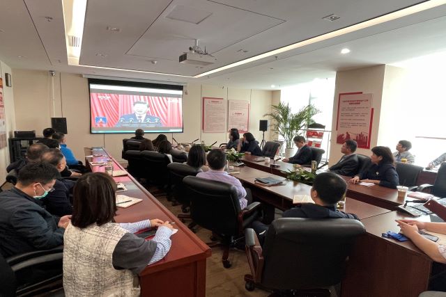 當(dāng)天上午,在安糧中心3208會(huì)議室內(nèi),安糧集團(tuán)黨委書記曹訓(xùn)立等黨委委員,團(tuán)委委員,集團(tuán)、控股支部黨員,部門負(fù)責(zé)人以及子公司黨員領(lǐng)導(dǎo)干部、統(tǒng)戰(zhàn)人員代表集中收看了開(kāi)幕直播盛況,同志們聚精會(huì)神地聽(tīng)、專心致志地記,仿佛置身于大會(huì)現(xiàn)場(chǎng)。