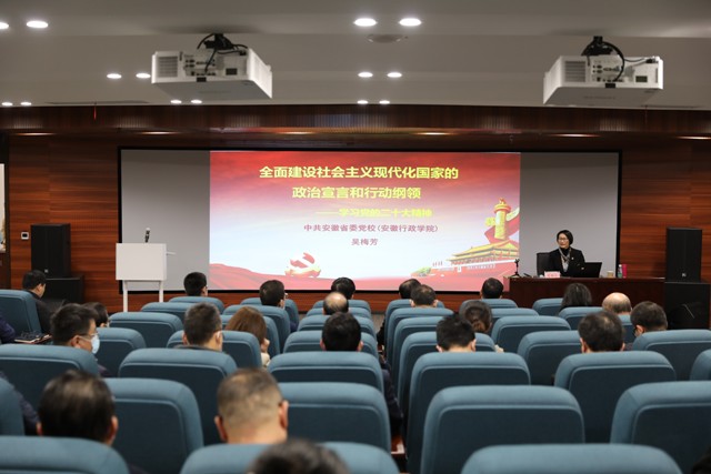 吳教授以《全面建設(shè)社會(huì)主義現(xiàn)代化國(guó)家的政治宣言和行動(dòng)綱領(lǐng)——學(xué)習(xí)黨的二十大精神》為主題展開宣講,她介紹了黨的二十大召開的特殊背景和重大意義,從黨的二十大的主題和主要成果、黨的二十大報(bào)告的基本內(nèi)容和核心要義、學(xué)習(xí)宣傳貫徹黨的二十大精神三個(gè)方面,深入淺出、融會(huì)貫通地分析了本次會(huì)議提出的各項(xiàng)突破、首次創(chuàng)新以及細(xì)微變化背后的深刻含義,為抓好黨的二十大精神的大學(xué)習(xí)、大宣傳、大貫徹工作指明了方向、提供了思路。