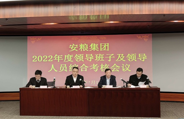 根據(jù)安徽國貿(mào)黨委統(tǒng)一部署,2023年1月11日,安徽國貿(mào)考核組到安糧集團(tuán)開展2022年度領(lǐng)導(dǎo)班子及領(lǐng)導(dǎo)人員綜合考核工作。安徽國貿(mào)黨委副書記、總經(jīng)理、考核組組長劉為出席會議并講話。安糧集團(tuán)黨委書記、董事長曹訓(xùn)立,黨委副書記、總裁方宗友等領(lǐng)導(dǎo)班子成員及中層正職管理人員、二級單位主要負(fù)責(zé)人、職工代表等參加考核會議,安糧集團(tuán)黨委副書記孫毅主持會議。