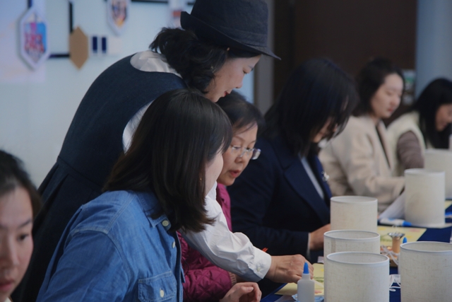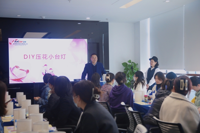 活動期間,花藝?yán)蠋熢敿氈v解了壓花臺燈制作方法,參加活動女職工盡情發(fā)揮想象力和創(chuàng)造力,精心挑選壓花材料,巧思創(chuàng)意構(gòu)圖,耐心拈花制作,一盞盞各具特色的壓花臺燈陸續(xù)點亮其樂融融的溫情畫面。