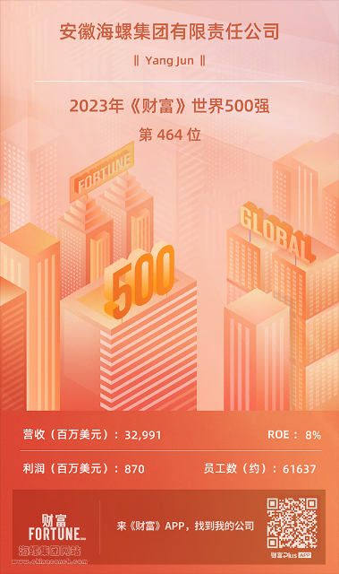 財富Plus APP于北京時間2023年8月2日與全球同步發(fā)布了最新的《財富》世界500強(qiáng)排行榜。海螺集團(tuán)以32,991百萬美元的營收名列2023年《財富》世界500強(qiáng)第464位。