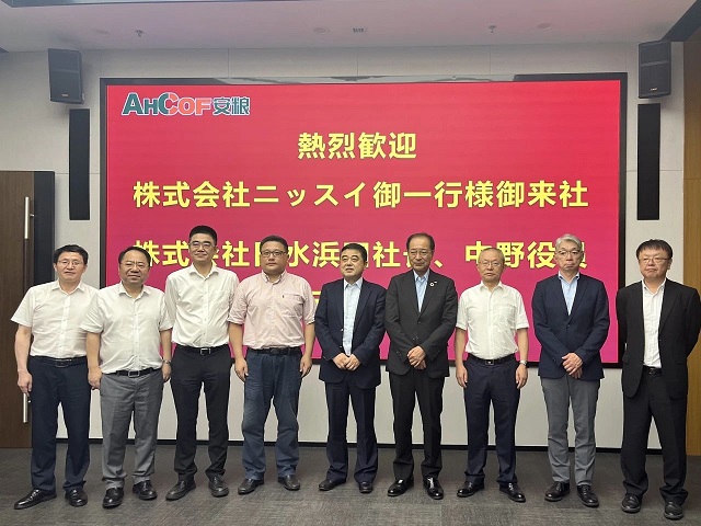 7月1日,海螺集團(tuán)副總經(jīng)理王建超、安徽國貿(mào)董事長何傳友、常務(wù)副總經(jīng)理陶軍、安糧集團(tuán)董事長吳國杰、總裁楊曉剛熱情接待了日水浜田社長一行,并在安糧中心32樓召開座談會(huì)。會(huì)上,王建超首先對(duì)日水社長一行的來訪表示歡迎。王建超表示日水是安糧的重要客戶,為安糧對(duì)日貿(mào)易的發(fā)展做出了積極貢獻(xiàn),希望能繼續(xù)強(qiáng)化合作,充分發(fā)揮日水種植、養(yǎng)殖和產(chǎn)品研發(fā)技術(shù)優(yōu)勢,立足國內(nèi)市場,加工適銷對(duì)路的產(chǎn)品,國內(nèi)國際兩個(gè)市場一起抓。同時(shí)希望能夠借鑒日水預(yù)制食品行業(yè)的先進(jìn)經(jīng)驗(yàn),重點(diǎn)拓展國內(nèi)預(yù)制菜市場。浜田社長表示日水和安糧的合作已有38年歷史,安糧也是日水進(jìn)軍中國市場后合作的第一批企業(yè),日水對(duì)海螺集團(tuán)、安徽國貿(mào)的企業(yè)實(shí)力和行業(yè)影響力十分贊賞,對(duì)安糧產(chǎn)品的品質(zhì)十分信任。浜田社長重點(diǎn)指出安糧新產(chǎn)品——調(diào)理南瓜產(chǎn)品在日本市場十分暢銷,希望日水研發(fā)團(tuán)隊(duì)和安糧工廠共同開發(fā)更多的調(diào)理蔬菜產(chǎn)品。