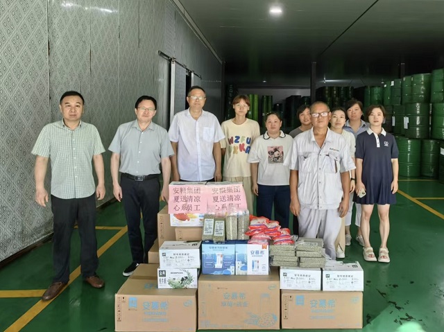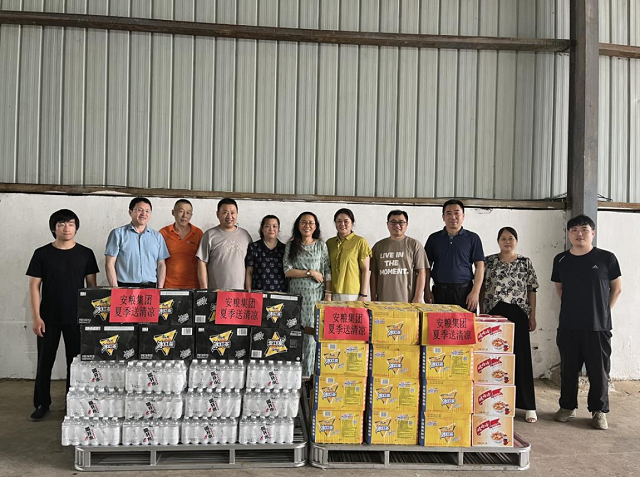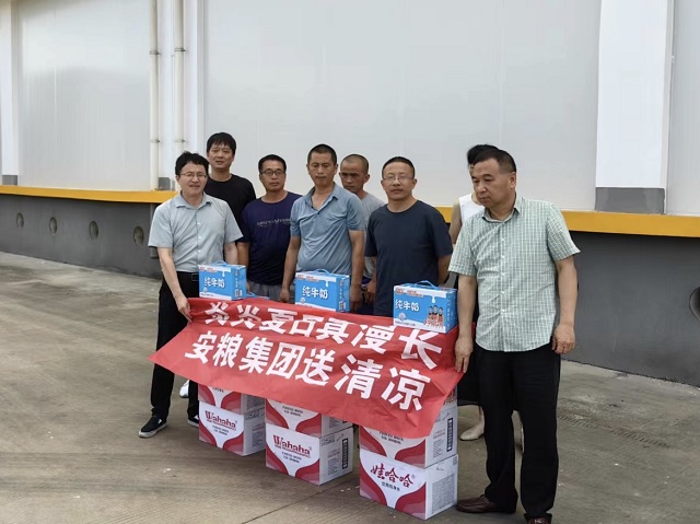 入夏以來,安徽多地開啟高溫模式,安糧實業(yè)于7-8月開展了“夏日送清涼”活動,慰問下屬工廠奮斗在一線的員工們,將防暑降溫物資送到基層員工手中,為高溫酷暑下堅守生產一線的員工撐起“遮陽傘”。