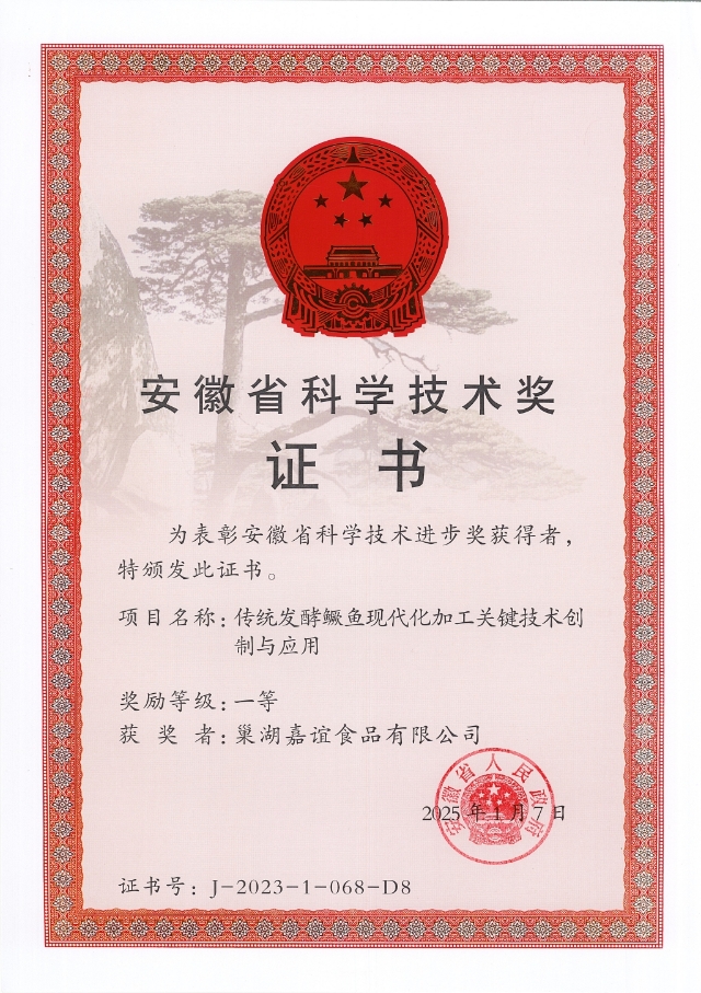 近日,安徽省科學技術(shù)獎評選結(jié)果正式公布,安糧旗下巢湖嘉誼食品有限公司憑借“傳統(tǒng)發(fā)酵鱖魚現(xiàn)代化加工關(guān)鍵技術(shù)創(chuàng)制與應(yīng)用”項目,榮獲安徽省科學技術(shù)獎一等獎。這一重大科技成果的取得,充分彰顯了安糧堅持科技創(chuàng)新驅(qū)動發(fā)展、深化產(chǎn)學研合作的戰(zhàn)略成效。