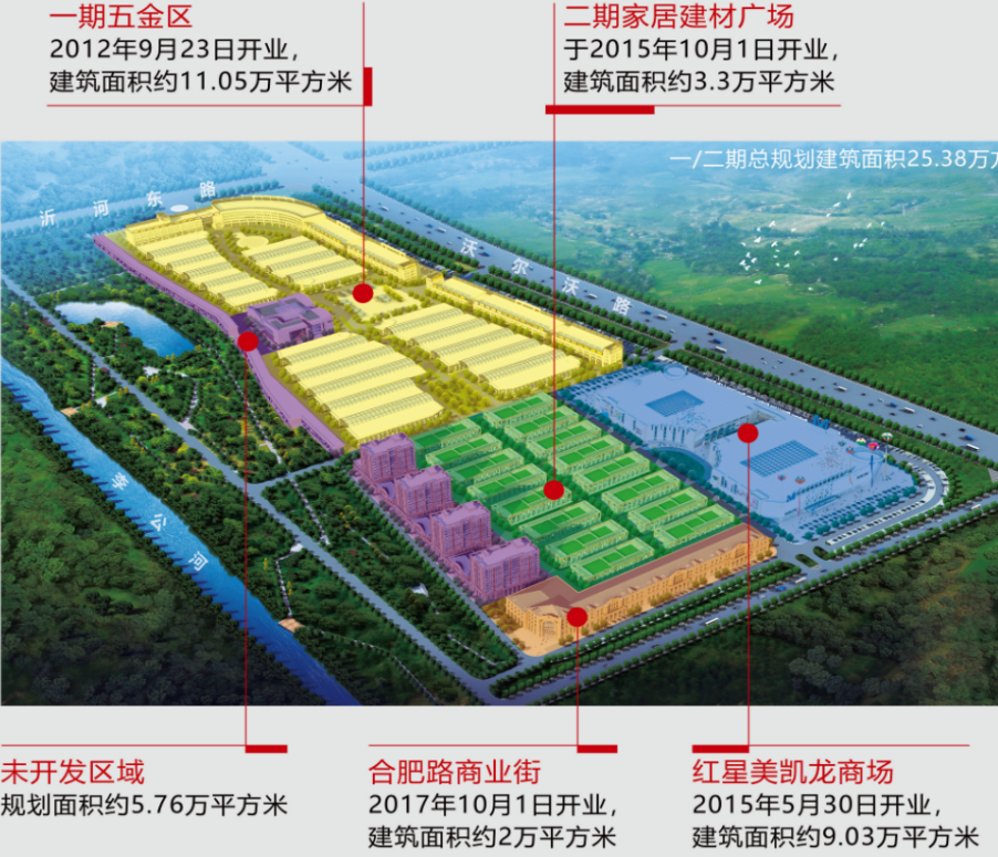 市場出租率85%以上,主要業(yè)態(tài)五金機(jī)電、管材、鋼材、建材、電商直播、生活配套。